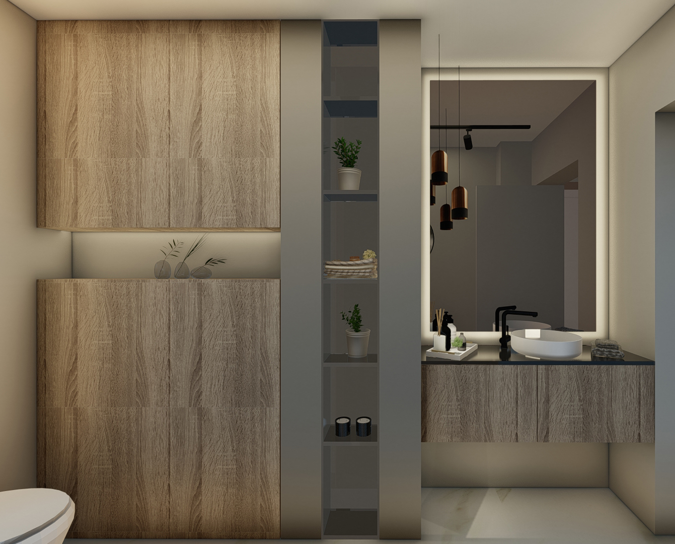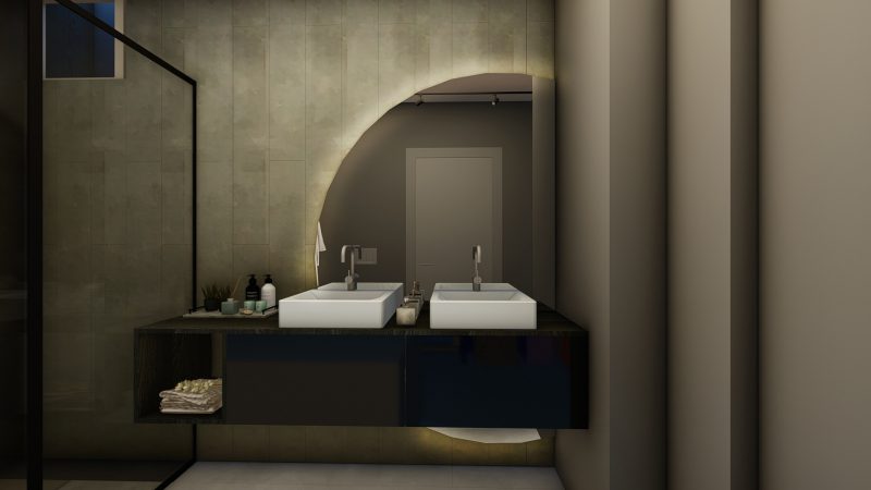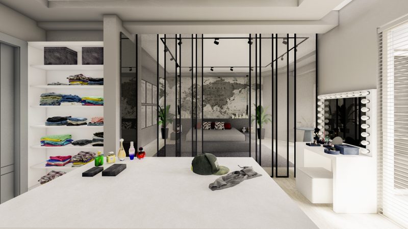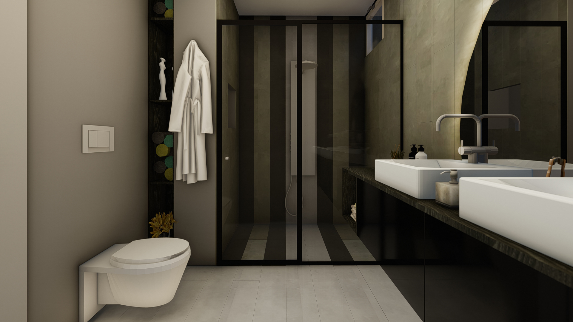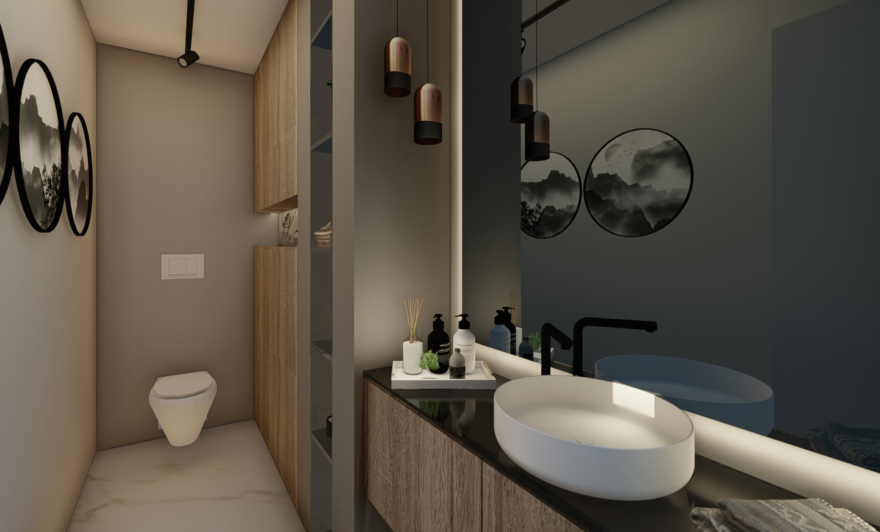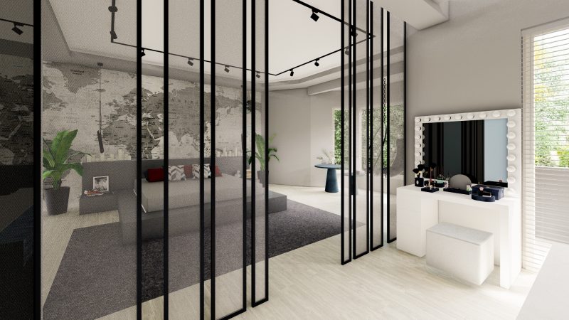 Denizli’de bulunan 3 katlı villanın tadilat iç mimari projesinde zemin katta bulunan salon, mutfak, giriş holü ve wc bölümlerinde ağırlıklı olarak açık renkler ve sıcak tonlar tercih edilmiştir. Bodrum katta bulunan yaşam alanı için koyu tonlar tercih edilmiş yeşil doku ile sakin bir ortam oluşturulmuştur ve mevcut açık mutfağın bir kısmı bar alanına çevrilmiştir. Gri tonların hakim olduğu yatak odasında özel bir yatak tasarlanmış ve arkası dünya haritası duvar kağıdı ile kaplanmıştır. Mevcut giyinme odası ile yatak bölümü yarı şeffaf bir seperatör ile ayrılmıştır. Camlı cumba önünde pileksi salıncak ile dinlenme ve okuma köşesi oluşturulmuştur.