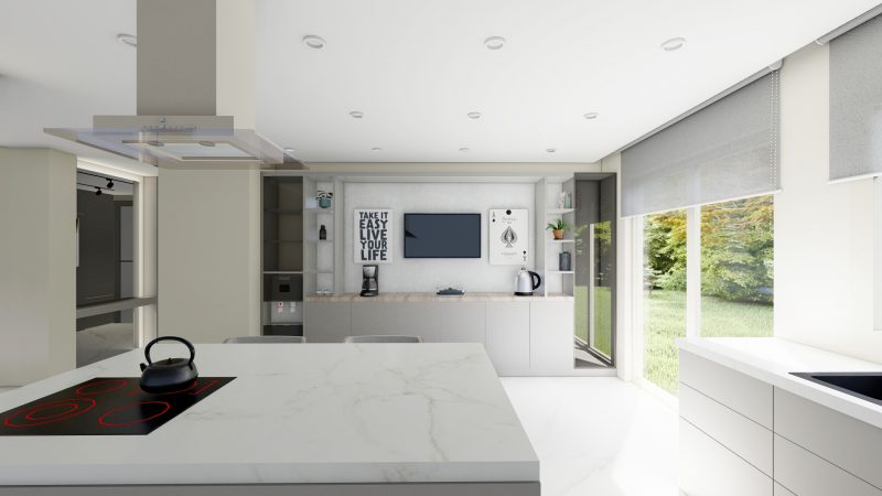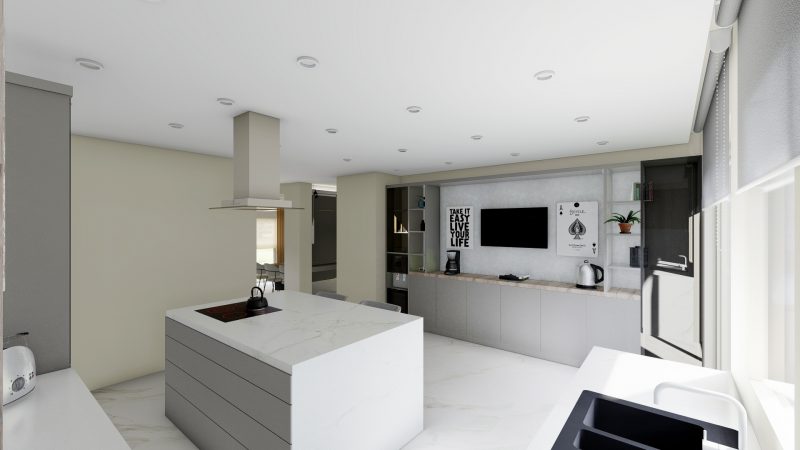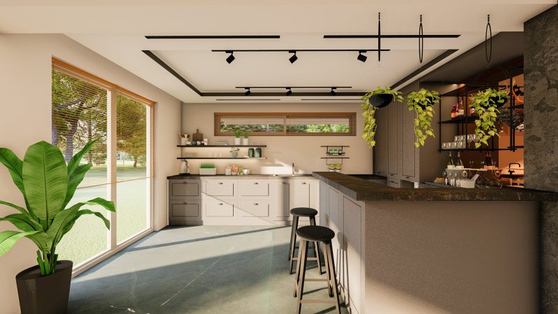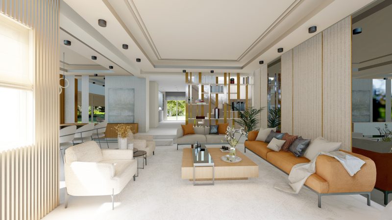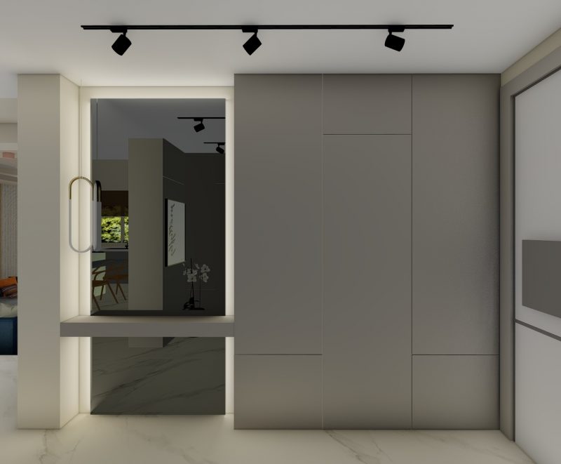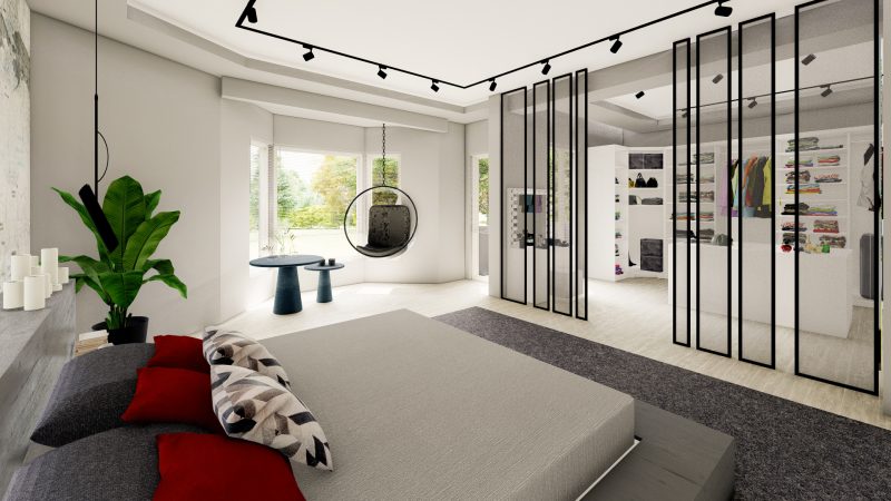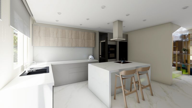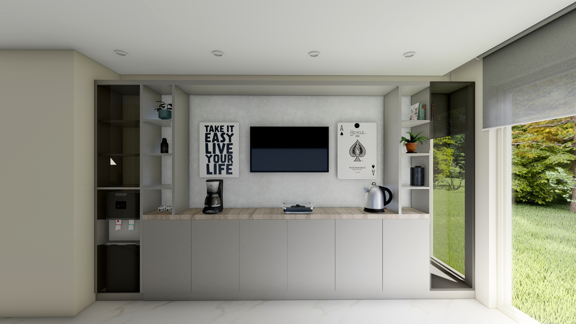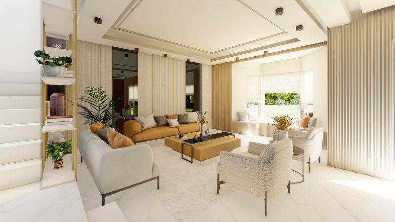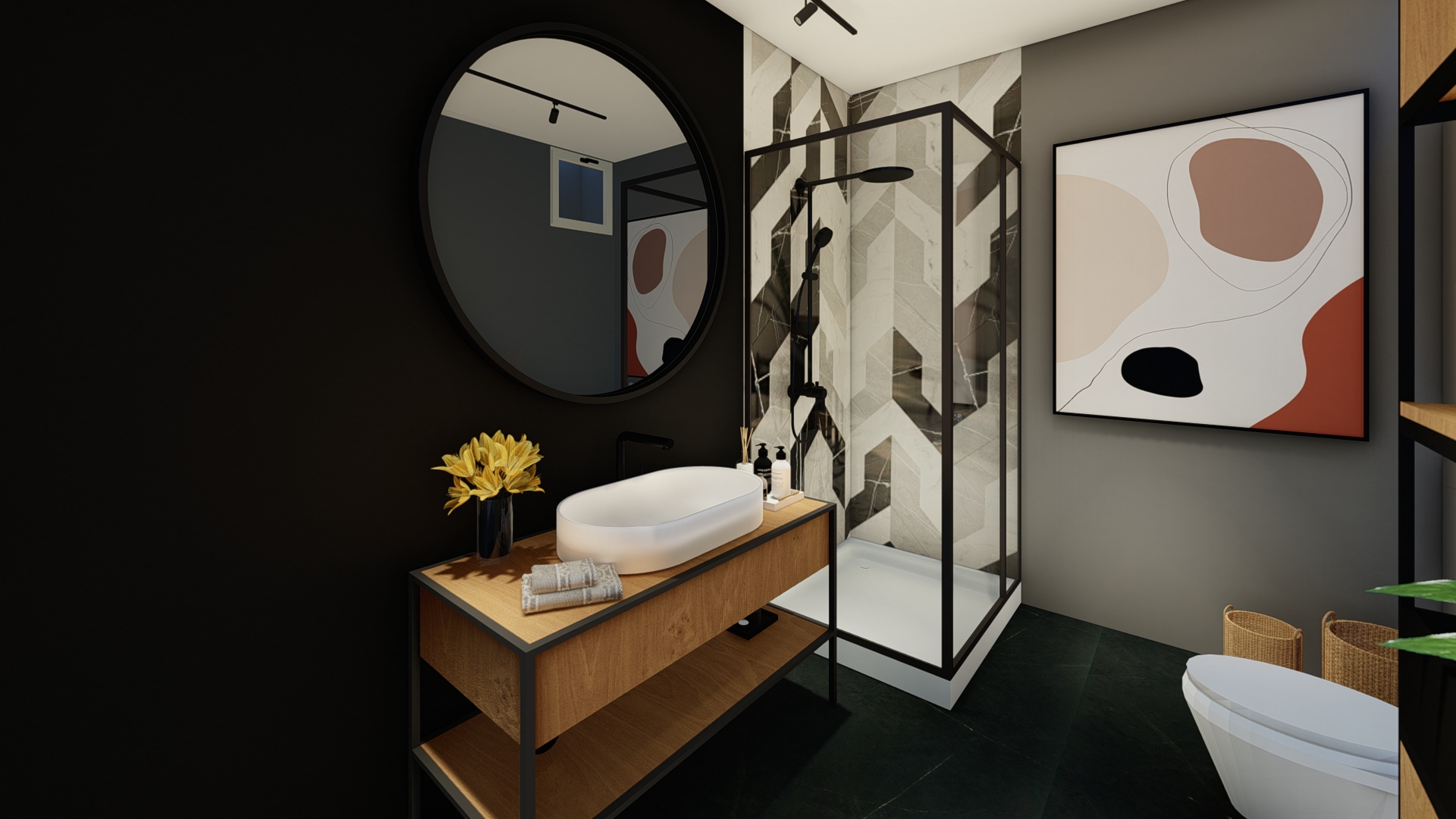 Denizli’de bulunan 3 katlı villanın tadilat iç mimari projesinde zemin katta bulunan salon, mutfak, giriş holü ve wc bölümlerinde ağırlıklı olarak açık renkler ve sıcak tonlar tercih edilmiştir. Bodrum katta bulunan yaşam alanı için koyu tonlar tercih edilmiş yeşil doku ile sakin bir ortam oluşturulmuştur ve mevcut açık mutfağın bir kısmı bar alanına çevrilmiştir. Gri tonların hakim olduğu yatak odasında özel bir yatak tasarlanmış ve arkası dünya haritası duvar kağıdı ile kaplanmıştır. Mevcut giyinme odası ile yatak bölümü yarı şeffaf bir seperatör ile ayrılmıştır. Camlı cumba önünde pileksi salıncak ile dinlenme ve okuma köşesi oluşturulmuştur.